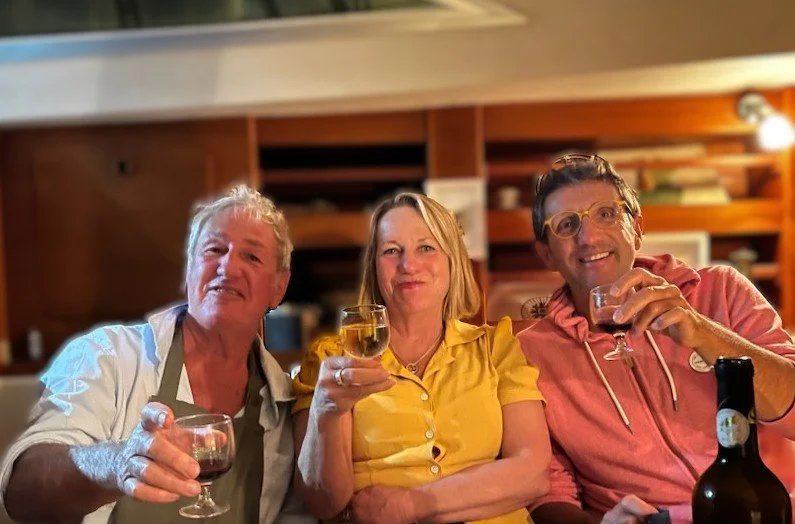 Fanget i Leucate altså… Sjømannen, vår venn i over 20 år, har ikke bare en båt, men også en bil. Nå er han også vår redningsmann, siden han kom fra Port Vendres for å frakte oss til hotellet vårt i Collioure. Tusen takk, igjen! Takk også for en kjempehyggelig kveld på båten med familien.